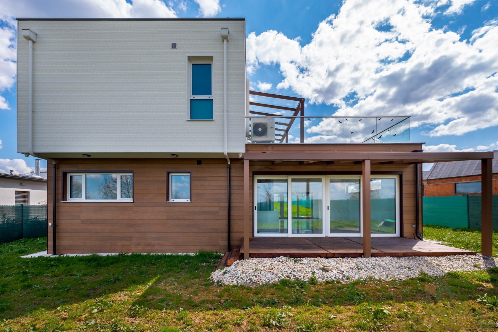 Při stavbě a vybavení byly použity pouze materiály nejvyšší třídy. Od italské mramorové dlažby a podlah z kanadského dubů, přes prémiovou kuchyni s kamennou deskou a sanitu Villeroy & Boch, až po nejmodernější technologie, jako je vytápění Viessmann, klimatizace Toshiba ve všech pokojích a sofistikovaný elektrický systém z Německa.